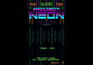 Project Neon is a new, vertical / TATE style Shoot 'Em Up (shmup), developed for the original Neo Geo MVS / AES platform. It features a 1-2 player mode, with all the bells and whistles of a classic shoot 'em up that you would expect, spiced up with some modern and unique concepts and game mechanics.