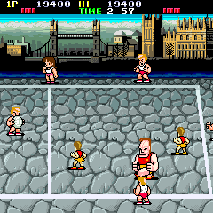Or, if you just feel like cutting loose, you can play Bean Ball mode which is just a free-for-all every-man-for-himself romp in the school yard. Be the last man standing. You can play this alone or with a friend, but the computer will control the remaining 4-5 players. |