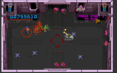 The year is 1999. The world's most popular television show is Smash T.V., an ultra-violent contest between two armed-to-the-teeth combatants, set loose in a series of deadly arenas that are filled to bursting with hordes of mindless beasts and killer robots. The aim of the game is to blast everything in sight and try to grab more cash and prizes than the other guy. Toaster ovens, VCRs, fancy cars and luxury holidays are there for the taking... for anyone who can survive long enough to enjoy them.