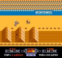 A dirt bike game. The player navigates a bike over hills and around competitors in an attempt to achieve the fastest time.