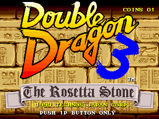 This is the third game in the series although there is little if any resemblence to the previous two titles. Players can choose to play Billy, Jimmy or Sonny who journey and fight throughout America, China, Japan, Italy and Egypt in search of the three Rosetta Stones. There are shops on each level that allow the player to purchase power-ups for depositing additional credits.