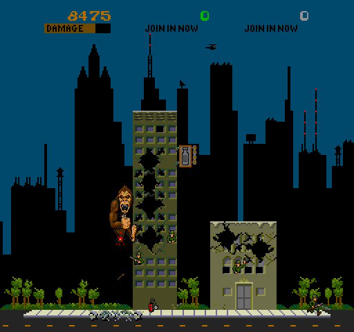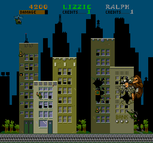 George, Lizzy and Ralph were just ordinary Americans, until an experiment went wrong, turning them into a Gorilla, Lizard and Werewolf respectively. Following this, the three of them plan to go round destroying buildings, and up to 3 human players can join in.