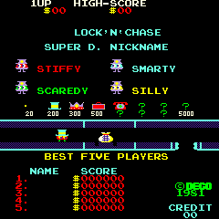 Lock 'n' Chase is an arcade action game similar to Pac-Man. You play a thief who is trapped in a maze like vault. To get out, you need to collect all of the gold dots located in the maze. Your task won't be easy, since there are four police officers in the vault who are constantly trying to catch you!