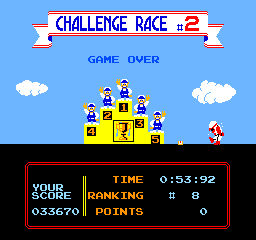 The game starts with a qualifying race, where the player is the only bike on the track. The player must navigate over hills, jumps, hay bails, and other obstacles in a set amount of time to qualify for the next race.